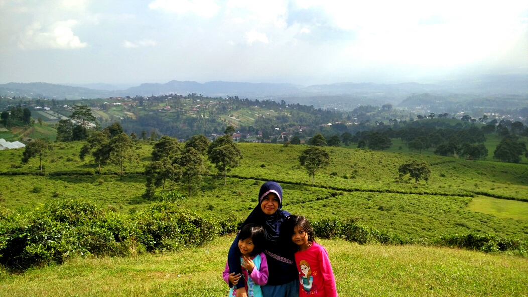 In frame : Mbak Sinta dengan background perbukitan pinus |